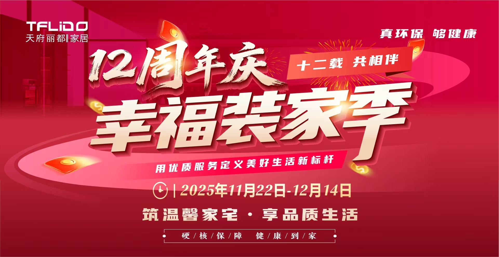 2025年11月22日至12月14日,天府丽都家居以一场温暖而有力的“12周年庆-幸福装家季”主题活动,为全国消费者交出了一份关于“健康、品质与幸福”的答卷。这场跨越23天的盛会,不仅是对品牌12年初心坚守的总结,更是一次以“真环保·够健康”为核心的全行业价值宣言——我们带领全国经销商伙伴,走进3000+家庭,用安全、品质、舒适的好家具,为每个家筑牢健康底色。